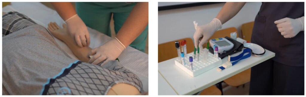 proceduri medicale esenţiale: recoltare, montare branulă şi administrare perfuzie, sub îndrumarea atentă a profesorilor.
