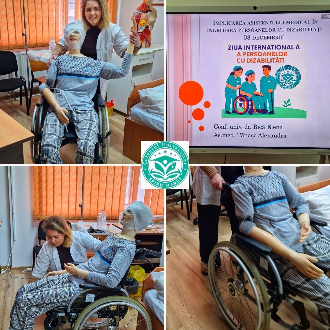 • Cu ocazia Zilei Internaţionale a Persoanelor cu Dizabilităţi, 3 decembrie, elevii Colegiului Universitar „Spiru Haret” Craiova au participat la o activitate educaţională dedicată rolului Asistentului Medical Generalist în îngrijirea persoanelor cu dizabilităţi.