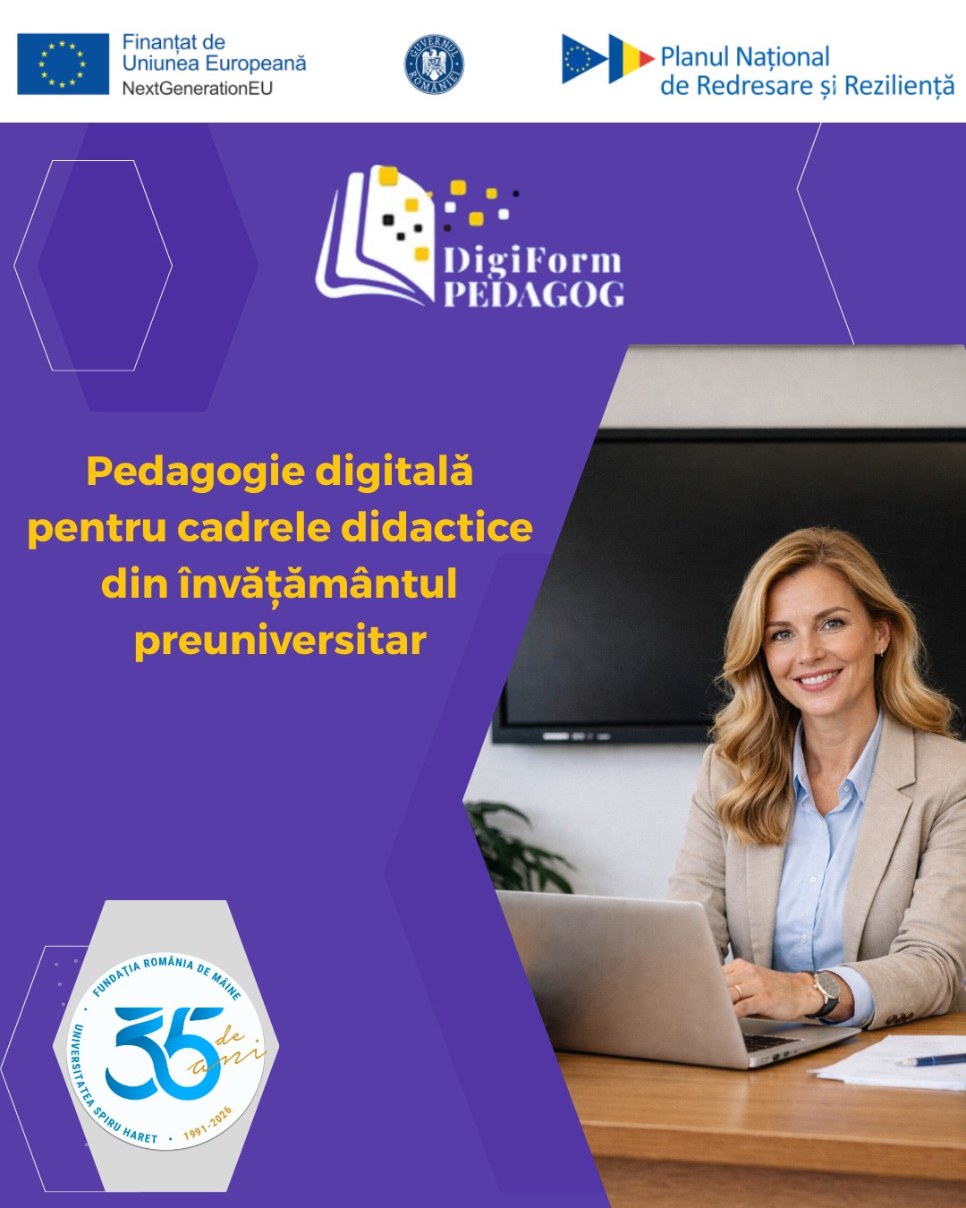 Recent, a fost finalizat Proiectul „DigiFormPedagog”, cea mai importantă investiţie în modernizarea sistemului educaţional, integrând tehnologia direct în procesul de predare. Universitatea „Spiru Haret”, în calitate de beneficiar unic, a coordonat acest demers strategic prin care 5000 de cadre didactice din învăţământul preuniversitar au dobândit competenţele digitale necesare şcolii viitorului.