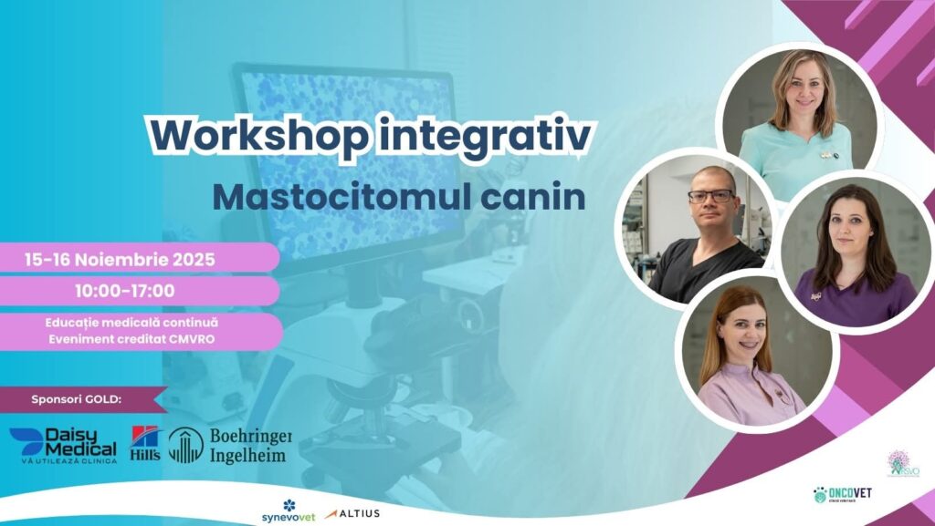 Urmează un nou eveniment important: workshop-ul „Mastocitomul Canin – de la A la Z”, programat pentru 15-16 noiembrie.