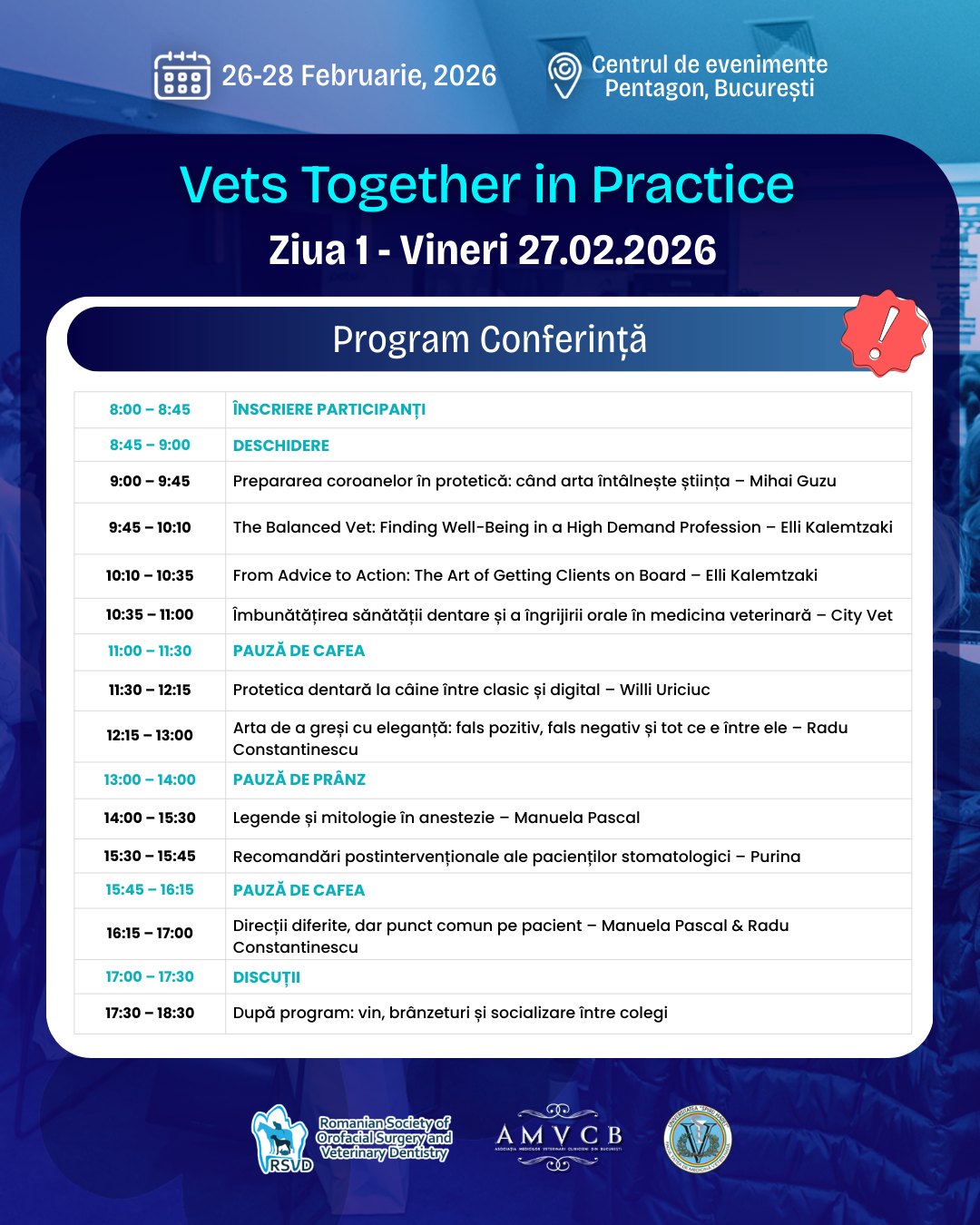 • 27–28 februarie – Conferinţă „Vets Together in Practice”