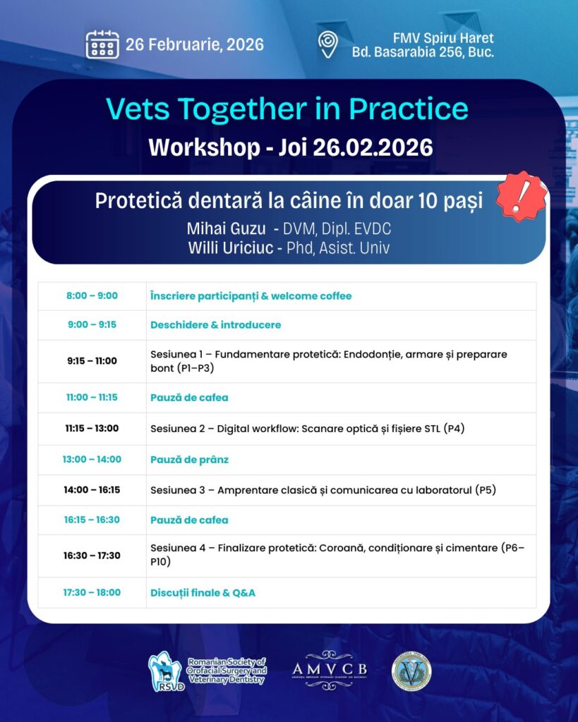 • 26 februarie – Workshop „Protetică dentară la câine în doar 10 paşi”