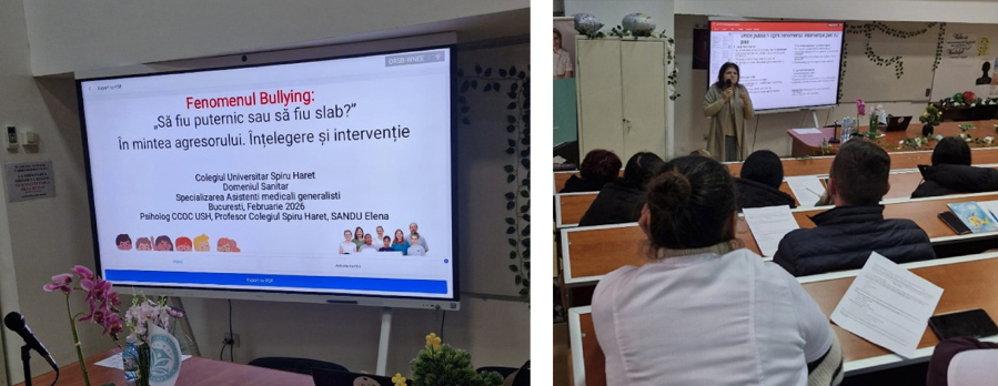 Recent, în sala Multimedia a Colegiului Universitar „Spiru Haret”, Domeniul Sanitar, Bucureşti, psiholog al Centrului de Consiliere şi Orientare în Carieră din cadrul Universităţii „Spiru Haret”, cadru didactic la Colegiul universitar Elena SANDU a susţinut în faţa cursanţilor, viitori Asistenţi Medicali Generalişti, prelegerea: