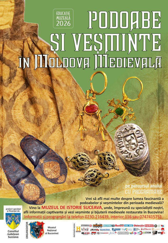 Printr-o idee minunată, Muzeul Naţional al Bucovinei prezintă proiectul educaţional „Podoabe şi veşminte în Moldova medievală”, oferind tuturor vizitatorilor ocazia de a explora modelele vestimentare şi bijuteriile specifice secolelor XV–XVII. Expoziţia include piese descoperite în morminte istorice şi colecţii de textile şi podoabe medievale restaurate, evidenţiind statutul social şi rafinamentul artistic al vremii. Activităţile sunt destinate publicului larg, dar şi elevilor şi cadrelor didactice, fiind finanţate de Consiliul Judeţean Suceava. Astfel lumea fascinantă a podoabelor şi veşmintelor din Moldova medieval va fi dezvăluită la Muzeul de Istorie Suceava. Cum se îmbrăcau boierii, domnii, domniţele, dregătorii şi curtenii Moldovei medievale? Ce veşminte şi ce bijuterii defineau statutul, gustul şi rafinamentul epocii? Răspunsurile la aceste întrebări vor prinde viaţă la Muzeul de Istorie Suceava, într-un demers cultural care aduce trecutul mai aproape de publicul de astăzi, invitând publicul să descopere lumea fascinantă a modei medievale, alături de specialiştii muzeului. Participanţii vor asculta poveştile modei din Evul Mediu şi vor admira veşminte şi bijuterii medievale restaurate în Bucovina, adevărate mărturii ale rafinamentului artistic şi ale statutului social: rochii, cămăşi, marame, bonete, pantofi, brâie, anterie colorate, precum şi ace de păr şi de voal, inele şi cercei. Aceste obiecte reprezintă importante izvoare istorice care au stat la baza studiilor privind evoluţia vestimentaţiei în Moldova medievală. O parte dintre piesele expuse provin din descoperiri arheologice sistematice realizate în morminte de la bisericile „Sf. Ioan Botezătorul” din Siret, Mirăuţi din Suceava, Mănăstirea Probota, Biserica „Sfântul Nicolae” Bălineşti. Ele se încadrează în două mari categorii: veşminte şi obiecte asociate ritualului funerar, oferind o perspectivă complexă asupra vieţii şi mentalităţilor epocii.