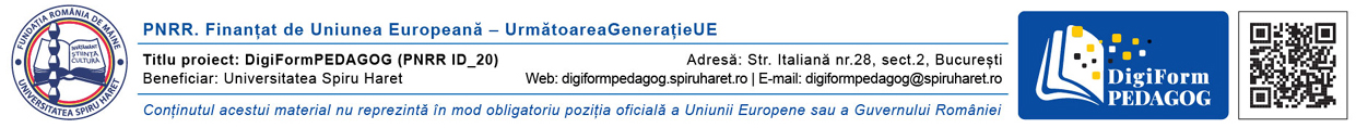 În perioada octombrie 2024 – martie 2026 Universitatea Spiru Haret a implementat proiectul ID_20 DigiFormPedagog finanţat prin PNRR, în cadrul apelului de proiecte PNRR/2024/C15/MEDU/I8/ „Pedagogie digitală pentru cadrele didactice din învăţământul preuniversitar”.