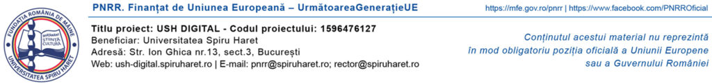 În perioada septembrie 2022- martie 2026, Universitatea Spiru Haret a implementat proiectul USH Digital finanţat prin PNRR, în cadrul apelului de proiecte PNRR/2022/C15/MEDU/I16./Apel competitiv de proiecte, dedicat universităţilor de stat şi private, pentru a creşte competitivitatea internaţională a concentrărilor academice şi pentru a dezvolta programe academice comune în domenii cu relevanţă socio-economică (smart specialisation) prin diferite tipuri de investiţii în infrastructură digitală universitară şi prin formarea de competenţe digitale avansate.