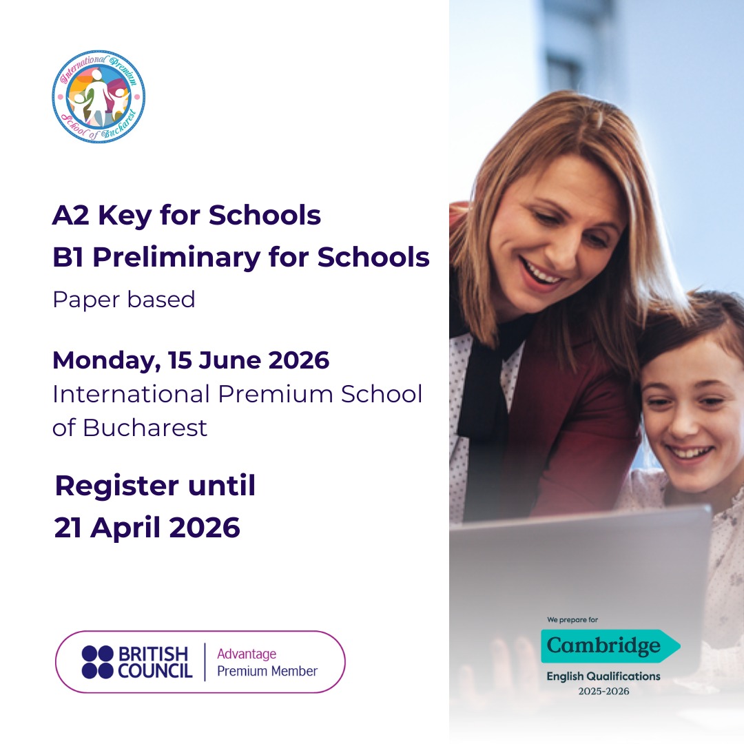 La Şcoala Gimnazială International Premium School of Bucharest se construieşte un spaţiu în care copiii sunt încurajaţi să gândească, să întrebe, să exploreze şi să îşi dezvolte încrederea în propriile forţe. IPSB este Centru de pregătire şi testare Cambridge şi Partener British Council, ceea ce înseamnă acces la certificări internaţionale şi o direcţie clară pentru viitor.