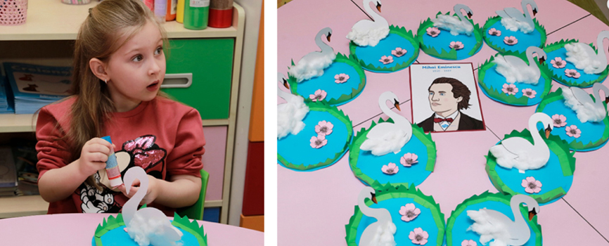 • De Ziua Culturii Naţionale, la Grădiniţa Prietenii Mei, copiii au descoperit o lume plină de frumuseţe şi sensibilitate. Au spus poezii, au aflat cine a fost marele poet Mihai Eminescu şi au desfăşurat activităţi creative inspirate din universul eminescian.